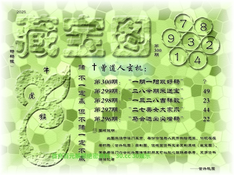 300期藏宝图曾道人玄机:一阴一阳取好码 解:一阴一阳,取双肖龙马虎狗猴鼠 解特肖:龙马虎狗猴鼠羊 |